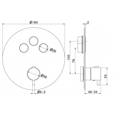 GABOLI FRATELLI THERMO.LINE MEZCLADOR TERMOSTÁTICO EMPOTRADO DE 2 SALIDAS