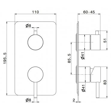 NEWFORM X-STEEL 316 MEZCLADOR EMPOTRADO CON DESVIADOR MECÁNICO DE 2 VÍAS CROMO