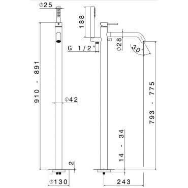 NEWFORM LINFA II MEZCLADOR BAÑERA DE SUELO CON DESVIADOR Y SET DUCHA
