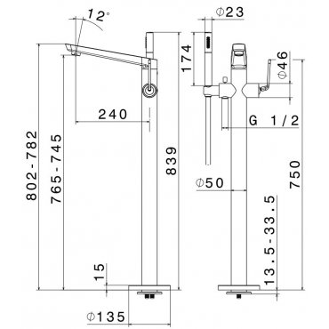 TREEMME NANOTECH GRIFO DE PIÉ PARA BAÑERA MONOMANDO CROMADO