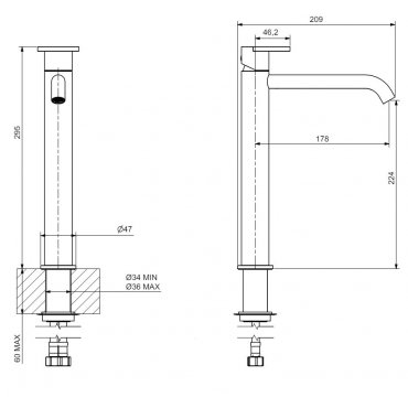 BUGNATESE B-COLOR MEZCLADOR ALTO LAVABO CON DESAGÜE CLICK-CLACK CROMO