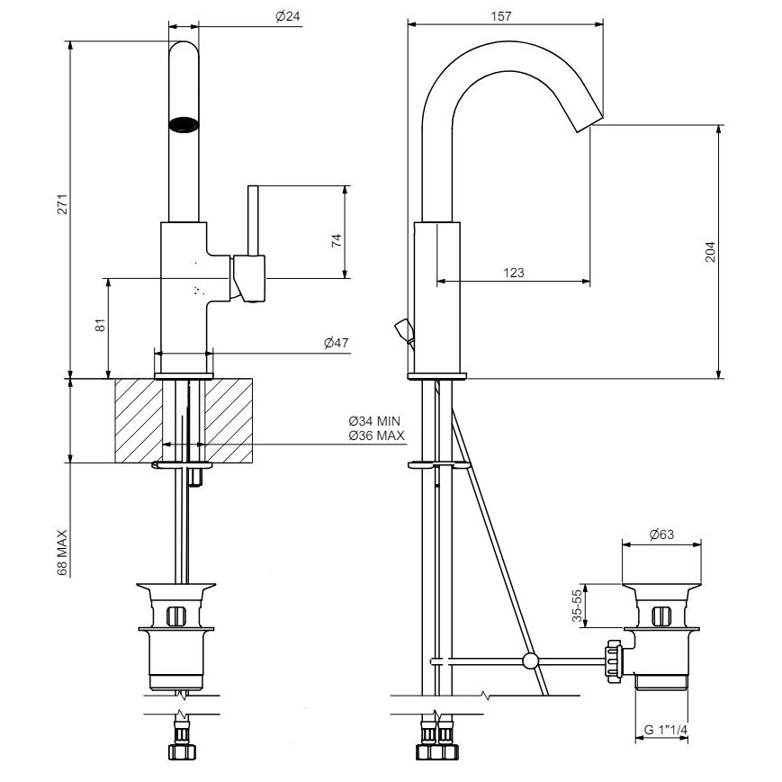 NEWFORM MINI-X PRO MEZCLADOR DE LAVABO CON DESAGÜE AUTOMÁTICO CROMO
