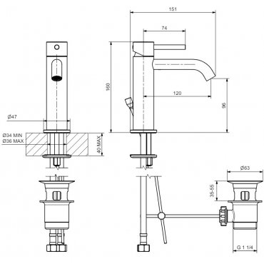 IB RUBINETTERIE WAVE MEZCLADOR DE LAVABO MEDIO CON DESAGÜE CLIC CLAC CROMADO