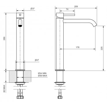 BUGNATESE K-LINE MONOMANDO ALTO LAVABO CAÑO FIJO SIN DESAGÜE CROMO