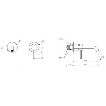 BUGNATESE K-LINE MEZCLADOR MURAL CON CAÑO DE 17 CM CROMADO