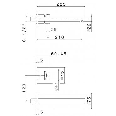 • QUADRO DESIGN VALVOLA02 MEZCLADOR MURAL DE 3 AGUJEROS CON CAÑÓN DE 190 MM