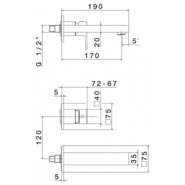 TREEMME 5 MM MEZCLADOR DE LAVABO MONOMANDO EMPOTRADO 170 ACERO