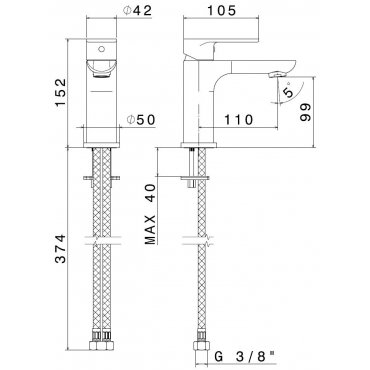 • BUGNATESE SMART MEZCLADOR LAVABO SIN VÁLVULA DESAGÜE CON FLEXIBLE ACERO INOX