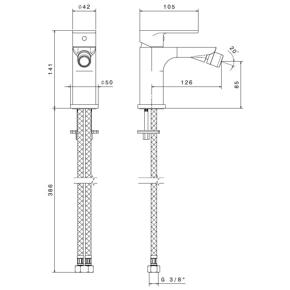 • BOSSINI MEZCLADOR BIDÈ MONOMANDO DE ACERO INOXIDÁBLE BRILLO SIN DESAGÜE