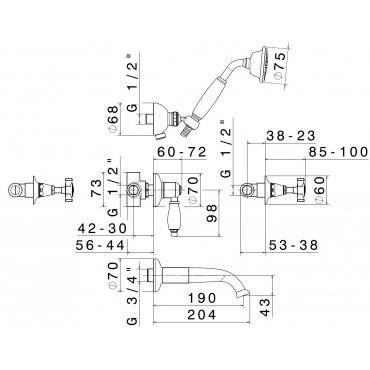 • NEWFORM B-EASY MEZCLADOR MURAL PARA BAÑERA CON CAÑO, DESVIADOR Y SET DUCHA CROMO