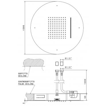 NEWFORM WELLNESS Ø40CM ROCIADOR REDONDO CON CHORRO LLUVIA Y CASCADA CROMO