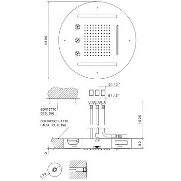 NEWFORM WELLNESS DUCHA MURAL Ø40CM EMPOTRADA CHORRO LLUVIA, CASCADA Y LED CROMO
