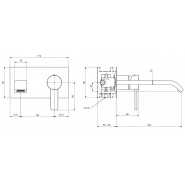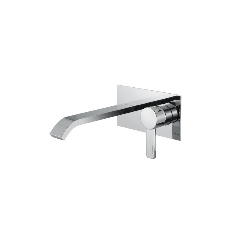 Mezclador monomando de pared con placa única y caño de 19 cm, con cartucho de 35 mm.