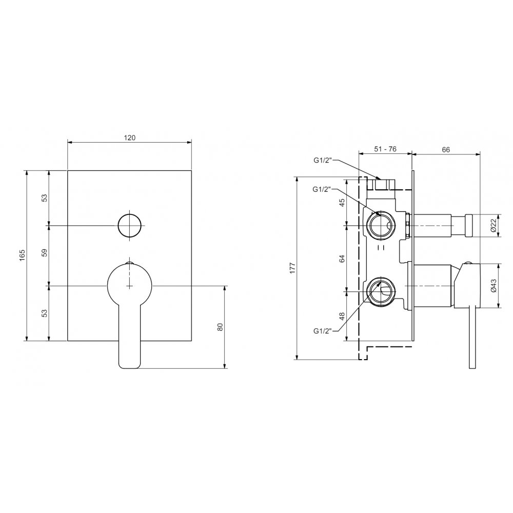 BUGNATESE MORSE MONOMANDO EMPOTRADO 2 VIAS DUCHA CON DESVIADOR CROMADO