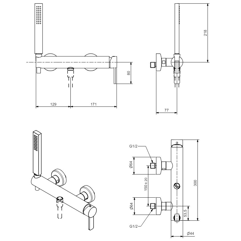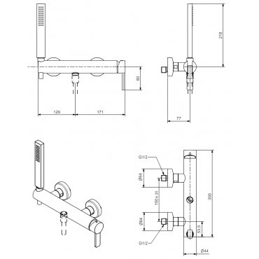 Mezclador monomando de cuerpo recto para ducha exterior completo con kit de teleducha, con cartucho de 35 mm.