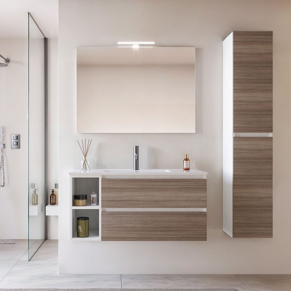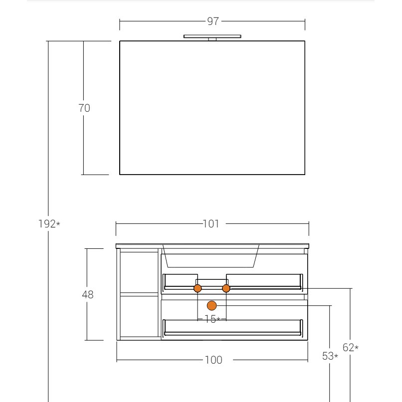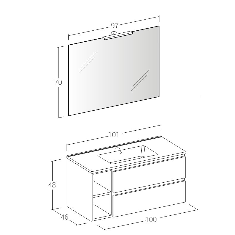 MUEBLE DE PARED 2 CAJONES CON LAVABO Y ESPEJO L.100 P.46