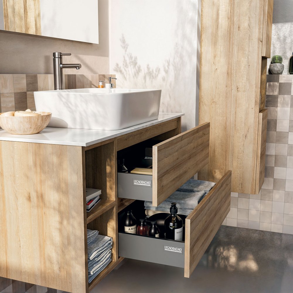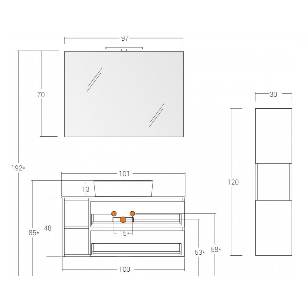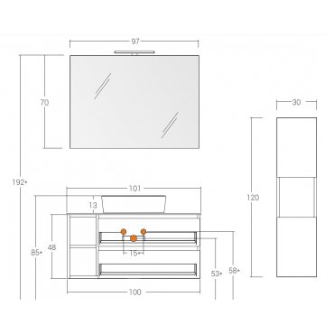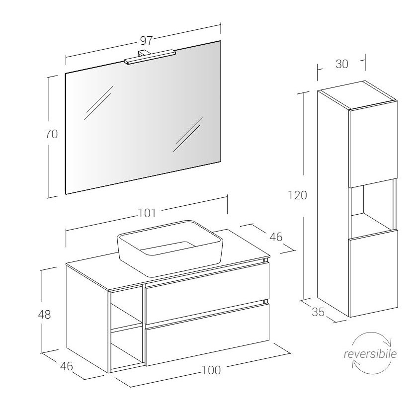 MUEBLE DE PARED 2 CAJONES CON LAVABO, ESPEJO Y COLUMNA - BIK7