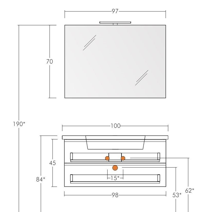 MUEBLE DE PARED DE 2 CAJONES CON LAVABO Y ESPEJO - SIM5