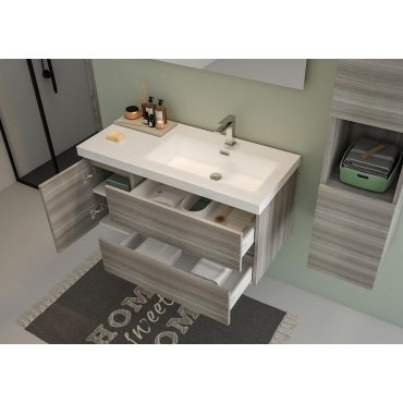 MUEBLE DE PARED 2 CAJONES Y 1 PUERTA CON LAVABO, ESPEJO Y MUEBLE ALTO - DOBLE1