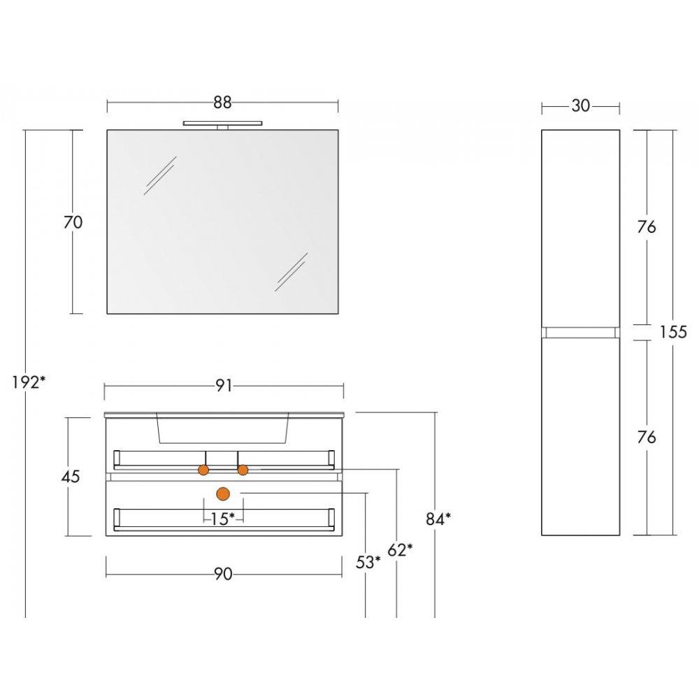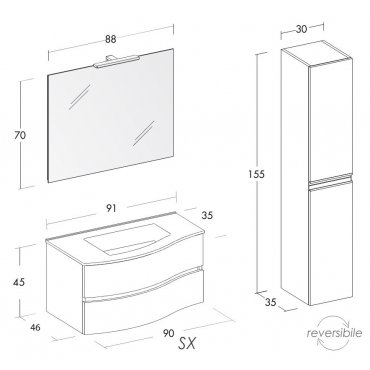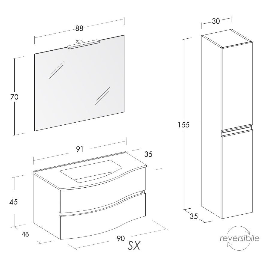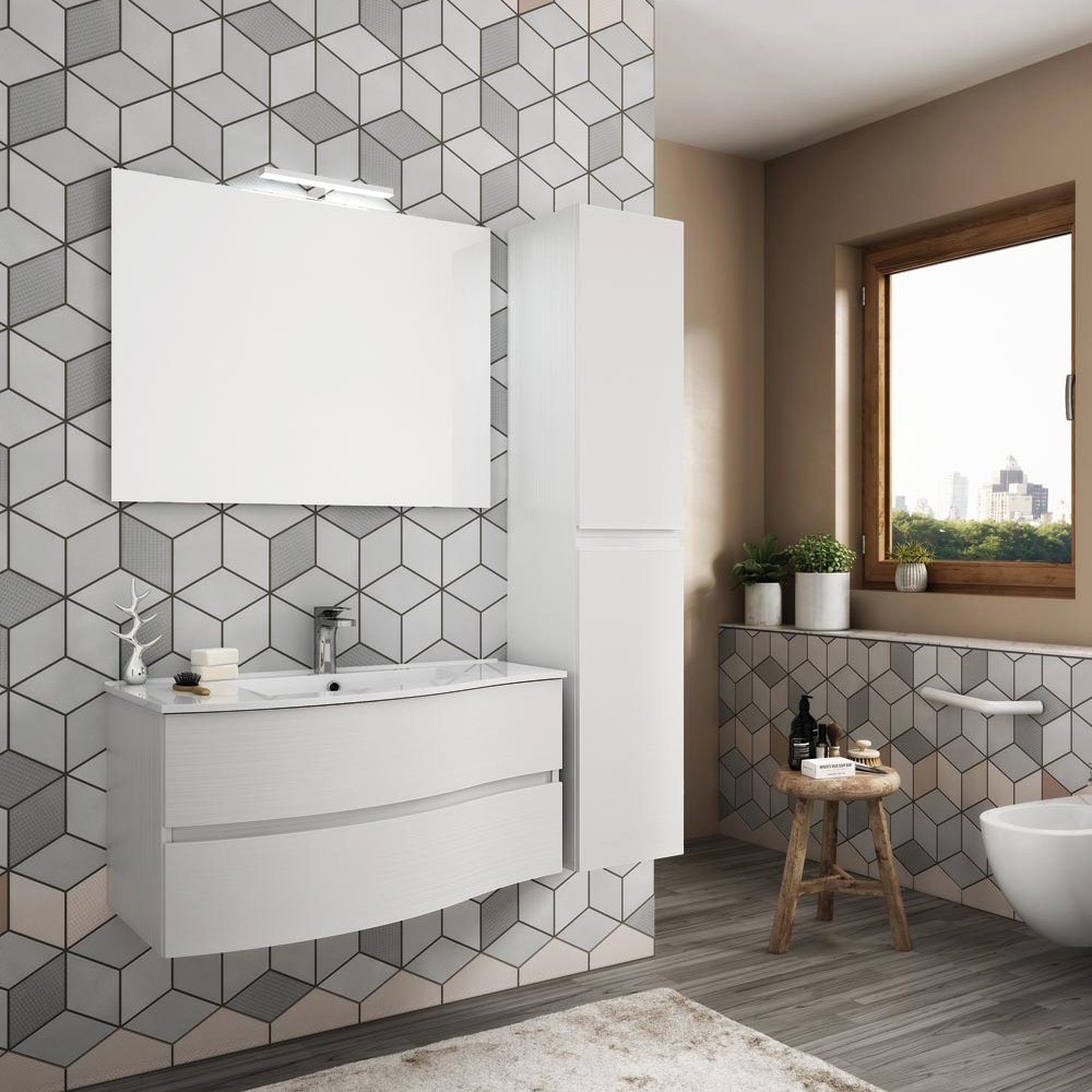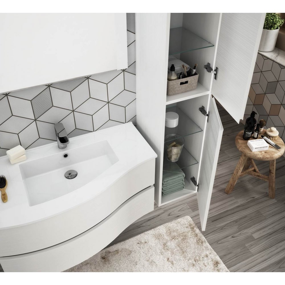 MUEBLE DE PARED CURVO DE 2 CAJONES CON LAVABO, ESPEJO Y APLIQUE - CURVY4