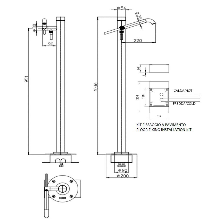 BOSSINI NOBU MEZCLADOR DE BAÑERA DE PIE ACERO SATINADO