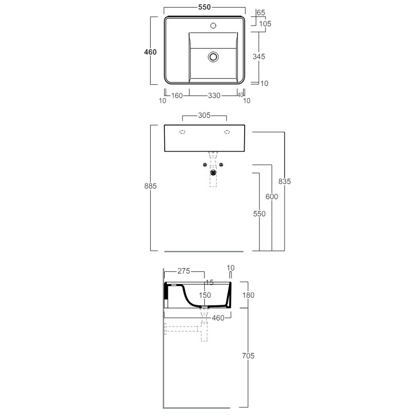 SIMAS RATIO LAVABO 1 ORIFICIO DE ENCIMERA O SUSPENDIDO BLANCO 55X46CM