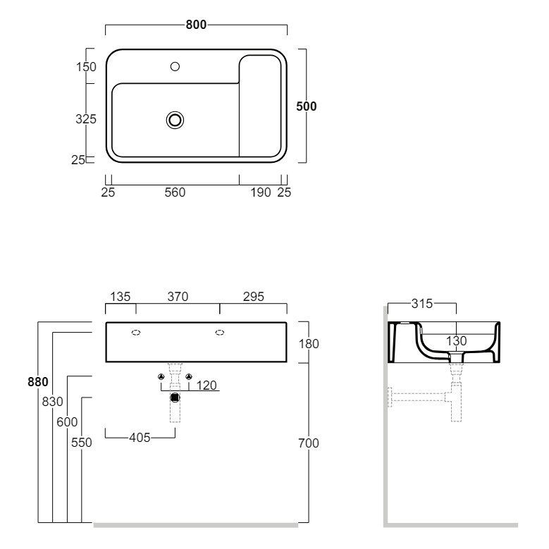 SIMAS HOP LAVABO 1 ORIFICIO DE ENCIMERA O SUSPENDIDO BLANCO 80X50CM