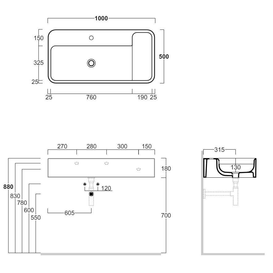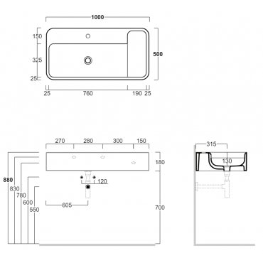 SIMAS HOP LAVABO 1 ORIFICIO DE ENCIMERA O SUSPENDIDO BLANCO 100X50CM