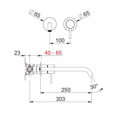 Piezas exteriores Mezclador mural de lavabo LEVEL para IN37 con caño L=250 mm