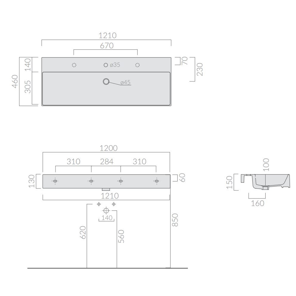 GALASSIA MEG11 PRO LAVABO SOBRE ENCIMERA O SUSPENDIDO BLANCO 121X46
