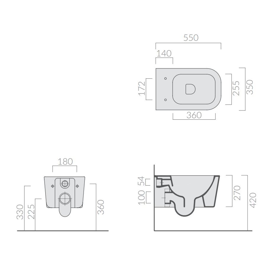 Inodoro suspendido 55x35 cm SIN PUENTE. Fijación incluida.