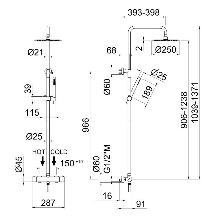 GABOLI FRATELLI WELLNESS COLUMNA DE DUCHA CON ROCIADOR Y DUCHA DE MANOS
