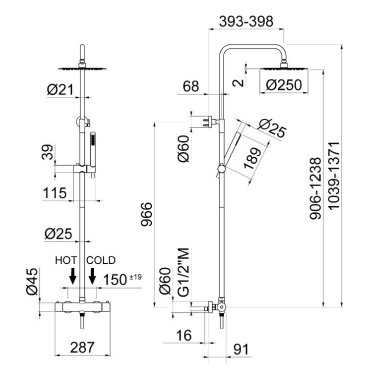 PAINI COLUMNA DE DUCHA CON MEZCLADOR TERMOSTÁTICO, DESVIADOR Y SOPORTE DE DUCHA