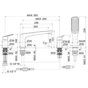 NEWFORM DELUXE GRUPO DE BORDE DE BAÑERA CON CAÑO, DESVIADOR Y SET DUCHA CROMO