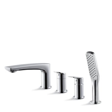 Grupo de bañera de montaje sobre encimera completo con caño, desviador y conjunto de teleducha.