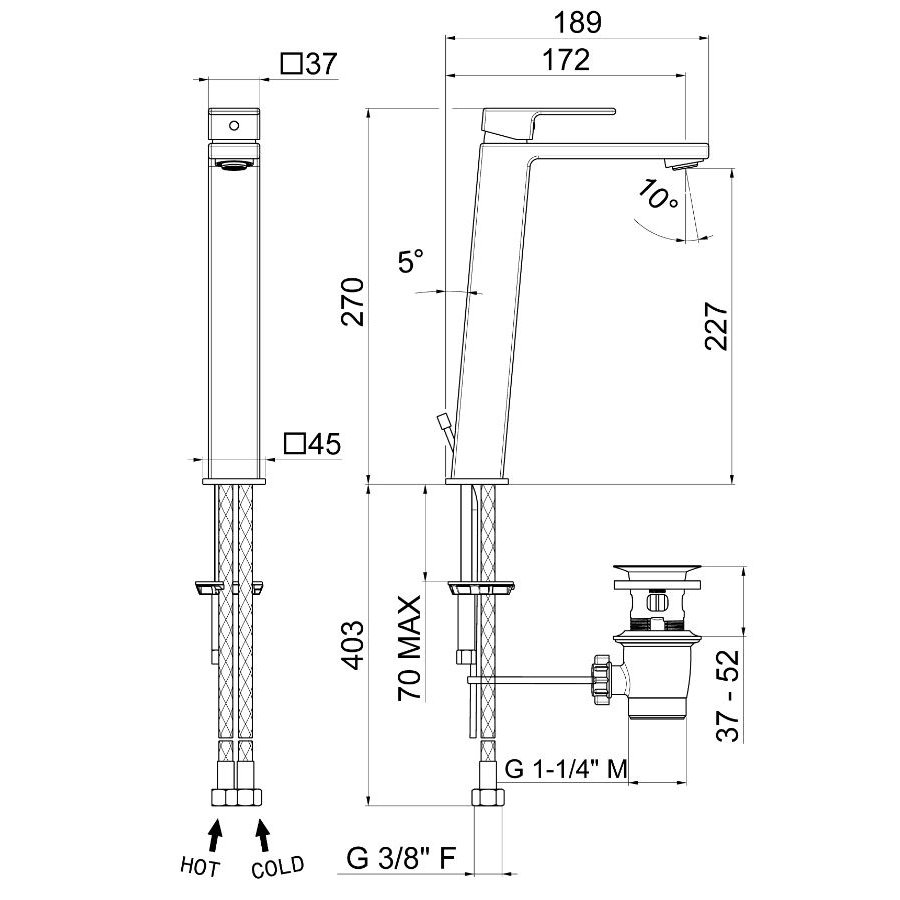 Mezclador monomando alto de lavabo para encimera, con desagüe de 1«1/4».