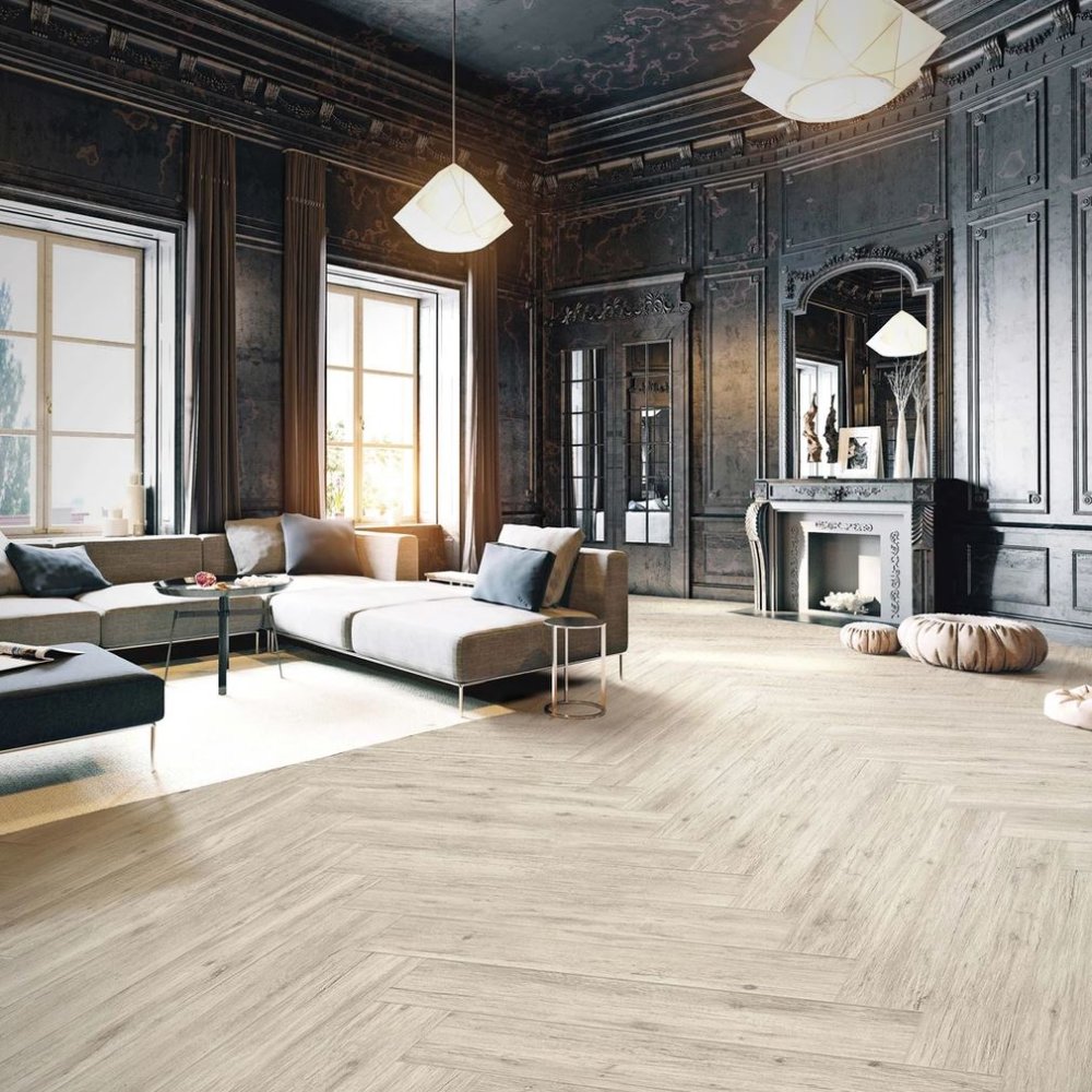 El proyecto Chalet de Savoia Ceramiche es conocido por su gres porcelánicoefecto madera, que reproduce con precisión las vetas, los nudos y las imperfecciones de la madera.