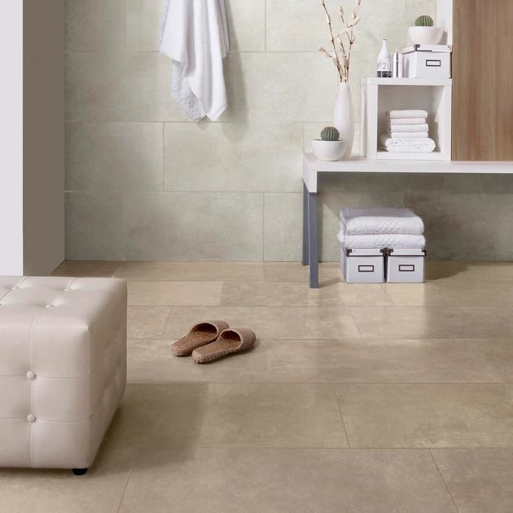 La superficie de gres porcelánico efecto cemento es suave y aterciopelada, y garantiza un equilibrio perfecto entre estética, practicidad y altas prestaciones.
