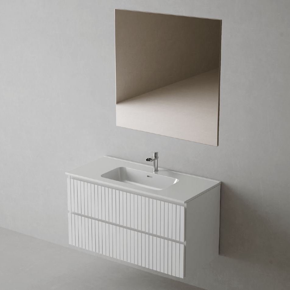 DOMITA GLOW MUEBLE DE 80CM CON 2 CAJONES CON LAVABO Y ESPEJO BLANCO MATT