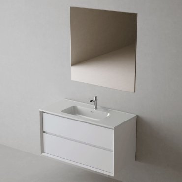 DOMITA COOL MUEBLE DE 100CM CON 2 CAJONES CON LAVABO Y ESPEJO BLANCO MATT