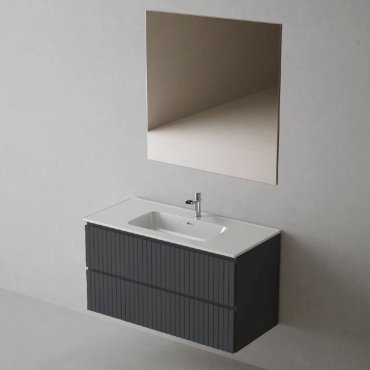 DOMITA GLOW MUEBLE DE 80CM CON 2 CAJONES CON LAVABO Y ESPEJO NEGRO MATT