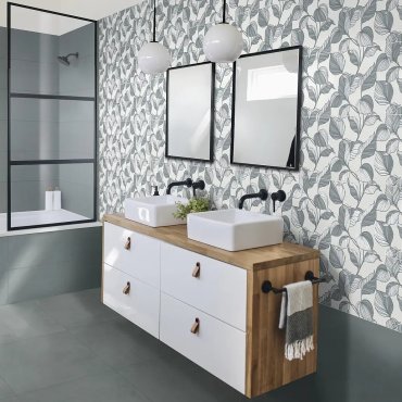 La colección se completa con decoraciones tridimensionales inspiradas en la naturaleza, como Foglia 3D, Romantica Caldo y Edera, y está disponible en seis tonos de color (bianco, beige, rosa, azzurro, verde e fango).