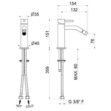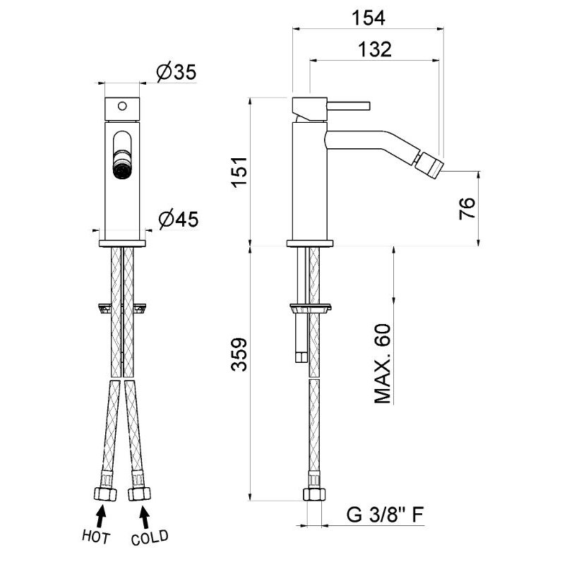 VEMA RUBINETTERIE OTAGO MEZCLADOR DE BIDÉ SIN DESAGÜE ACERO INOXIDABLE