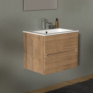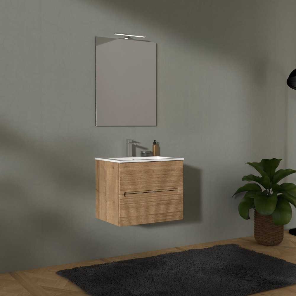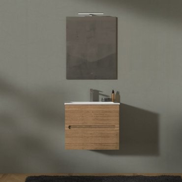 ADATTO CASA RIGO MUEBLE 60CM 2 CAJONES CON LAVABO Y ESPEJO ROVERE FARNIA