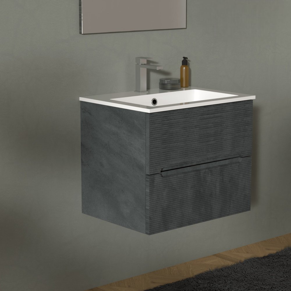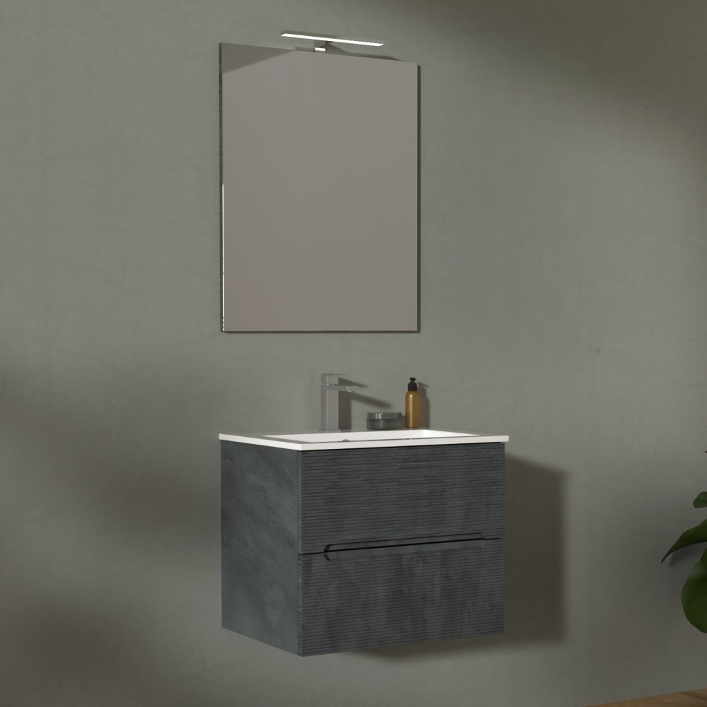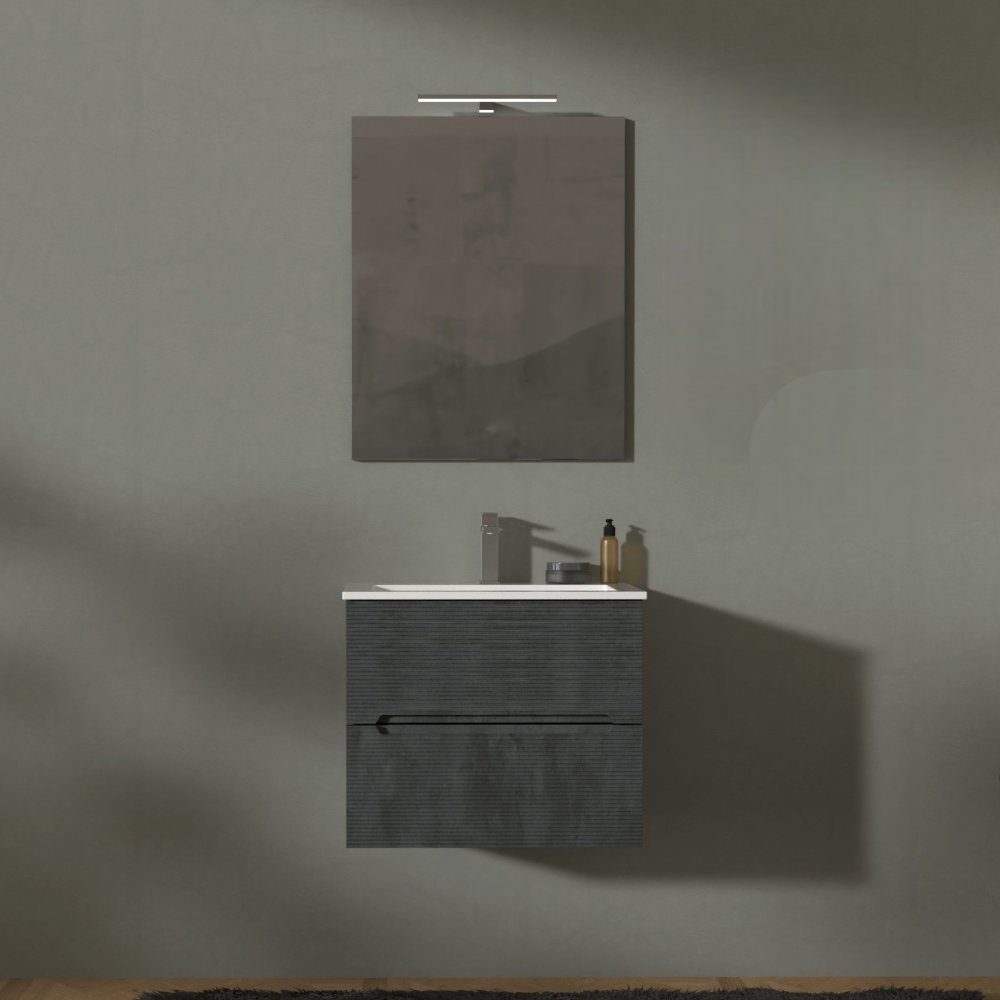 ADATTO CASA RIGO MUEBLE 60CM 2 CAJONES CON LAVABO Y ESPEJO GRIGIO LAVA