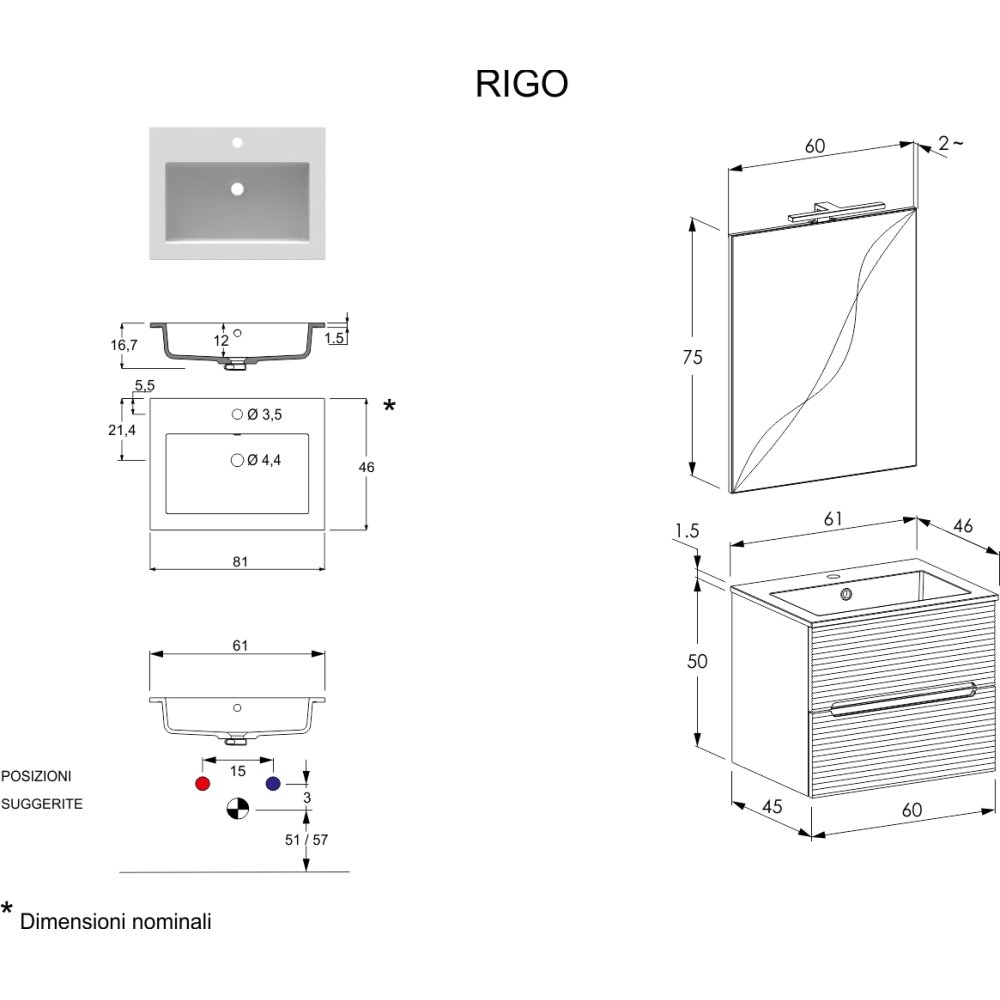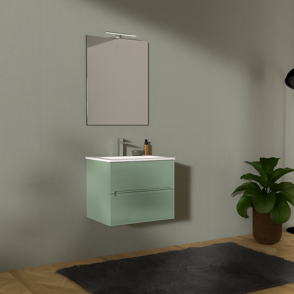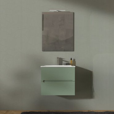 ADATTO CASA RIGO MUEBLE 60CM 2 CAJONES CON LAVABO Y ESPEJO VERDE SALVIA