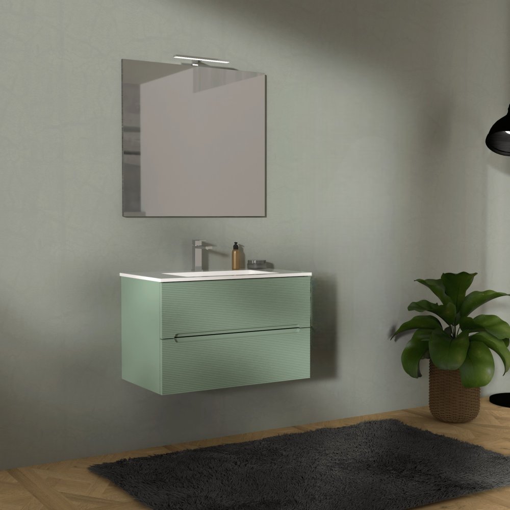 ADATTO CASA RIGO MUEBLE 80CM 2 CAJONES CON LAVABO Y ESPEJO VERDE SALVIA