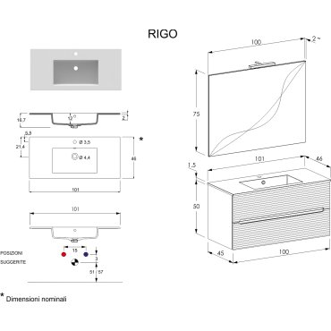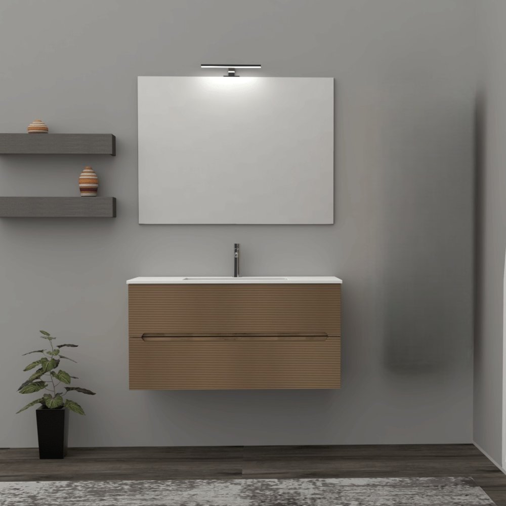 ADATTO CASA RIGO MUEBLE 100CM 2 CAJONES CON LAVABO Y ESPEJO ROVERE FARNIA