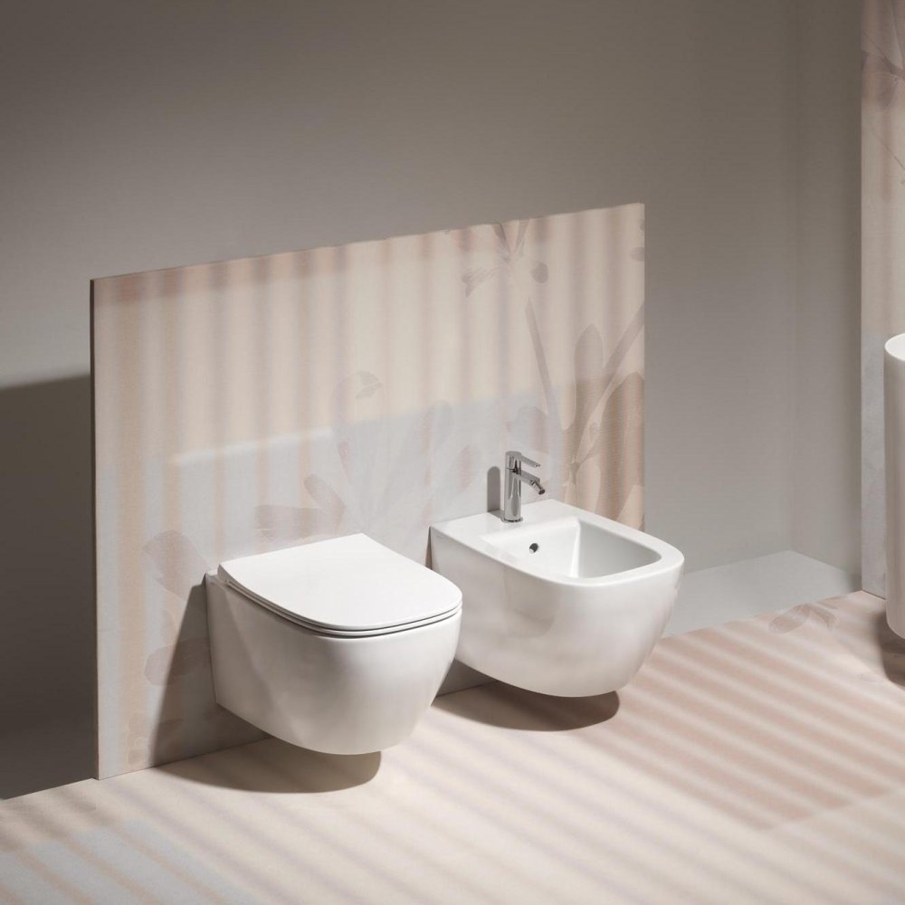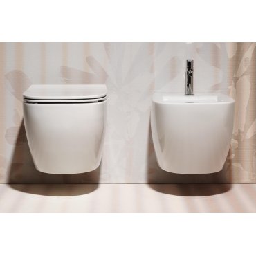 SIMAS LANTE INODORO Y BIDET SUSPENDIDOS BLANCOS CON BISAGRAS SOFT CLOSE