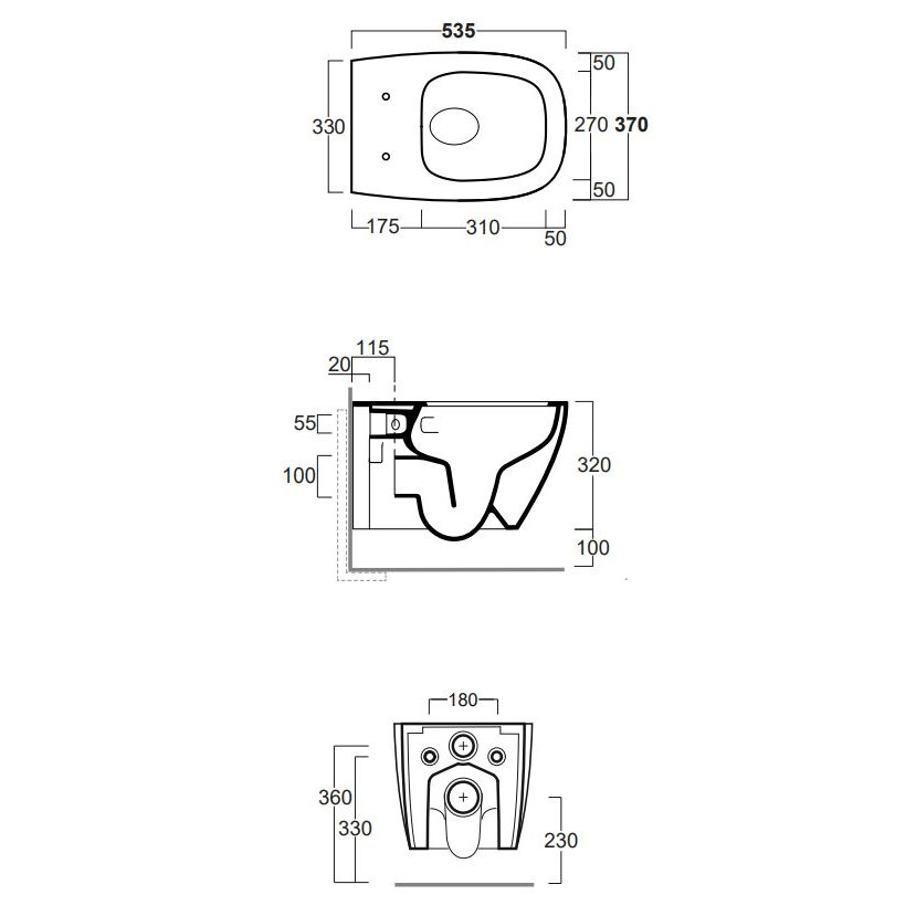 El conjunto incluye: JU18 - WC suspendido con desagüe en espiral GREEN VERTIGO. JU19 - bidé suspendido de un orificio JU004 - tapa de WC blanca con bisagras de acción lenta cromadas de liberación rápida F85 - juego de tornillos de fijación para completar los soportes para WC suspendido o bidé